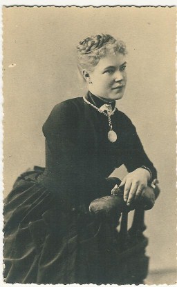 Here is Julia with a friend (unknown). This photo was taken by the Parisian Photographic Co. of 45 Gildridge Road, Eastbourne. From the 1891 census records, we know that Julia Hemming was working as a cook for James Young and family at 27 Jevington Gardens, Eastbourne, Sussex. So we can assume that this was taken between 1890 and 1892, when Julia was between 25 and 27 years old.